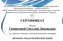 Сегодня педагогам Алексеевой Ф.Ш., Ахметшиной Э.Т., Гинятовой С.З. были вручены сертификаты за участие в заочном этапе регионального конкурса "Ярмарка педагогических идей". Желаем нашим педагогам счастья, здоровья, творческих успехов!!!