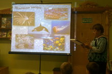 Сегодня сотрудники филиала детской библиотеки № 38 для воспитанников групп №№7 и 13 рассказали ребятам о непредсказуемой стихии - море, о его жителях и дарах, которые дарит нам эта водная стихия. Далее ребята отгадывали загадки, отвечали на вопросы викторины, делились своими впечатлениями. В завершение дети с удовольствием посмотрели мультфильм на данную тему "Обезьяна с острова Саругасима"