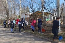 Вооружившись граблями, лопатами и мешками для мусора, они с энтузиазмом очищали прилегающую территорию от прошлогодней листвы, веток и накопившегося за зиму мусора.