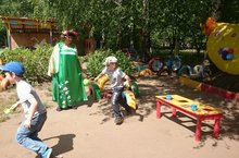 Воспитатель Аксянова Руфия Кябировна для дошкольников средней группы провела спортивное развлечение "Веселое лето". Развлечение прошло на прогулке.