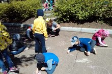 Приуроченный ко дню защиты детей педагоги устроили детям цветной праздник из мела!!!! Асфальт был расскрашен в очень интересны рисунки!!!Детям очень понравилось!!!