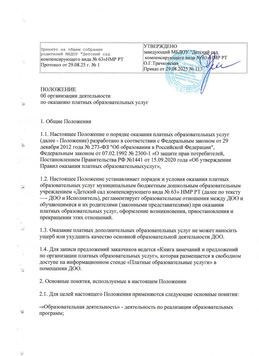 Положение об оорганизации деятельности об оказании платных образовательных услуг 2025