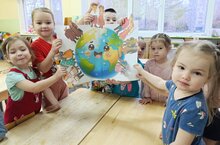 В преддверии праздника "День народного единства" воспитанники младших групп создали коллективную работу, где отразили цвета государственного флага, вокруг изображения Земли разместили силуэты народов России. С заботой и ответственностью старшие ребята помогали младшим в создании плакатов.