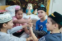 Сегодня в нашем детском саду состоялась игровая, развлекательная программа «День татарских народных игр». Дети познакомились с культурой татарского народа, поучаствовали в таких играх как: "Түбәтәй" (Передай Тюбетейку), "Йомгагым" (Клубочок), «Капкалы» (Ворота), "Без,без,без идек" "Йөзек салыш" (Колечки).