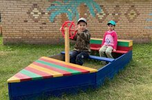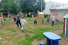 Летние дни на детской площадке насыщены и увлекательны. -