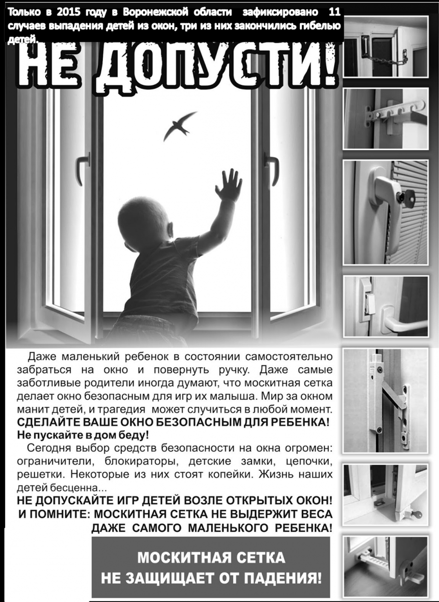 Ежегодно в России с наступлением тепла отмечается рост несчастных случаев, когда маленькие дети выпадают из окон, особенно в возрасте от 3 до 5 лет. И в некоторых случаях это факты с летальным исходом. Печальная статистика говорит о том, что почти половина случаев происходит тогда, когда родители оставляют детей без присмотра.