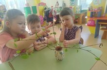 Воспитанники группы познакомились с весенними изменениями в жизни растений. Узнали, что почки — это дом для листочков. Набухли почки — появятся листочки. Сформировали представление о жизни растения как живого существа (оно растёт, развивается, нуждается в солнце, воде). На прогулке мы срезали веточки берёзы с почками и принесли их в группу. Поставили в баночку с водой на подоконнике. Ребята с интересом наблюдали за развитием почек. И вот на веточках появились настоящие листочки!