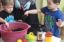 Зурлар төркемендә тәрбияләнүче балалар тәрбияче апалары белән берлектә суган утырту белән шөгыльләнделәр. Алар бу эшне бик теләп һәм кызыксынып башкардылар.