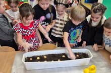 Далее ребята будут наблюдать за изменениями своих посевов и ждать ростков, а в мае высядят их в открытый грунт на огороде детского сада.