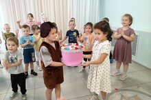 В этот день ребята не смогли пропустить такое яркое событие. Дети поздравили с днём рождения забавного и смешного Чебурашку, спели для него “Каравай”, подарили торт