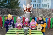 Наши маленькие защитники природы устроили замечательную акцию — развесили кормушки для птиц! Это мероприятие было посвящено сразу двум важным датам: 80-летию Победы и Международному дню птиц.