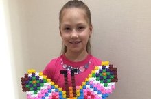 Понамарева Алена, ученица 2 Б класса, собрала из мелких деталей конструктора бабочку.