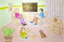 Гогина Софья, ученица 1б класса (кл.рук. Прописнова Л. И.), принимает участие в муниципальном конкурсе рисунков «Всей семьей дома»