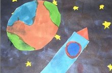 Ученица 2 б класса Каримова Азалия подготовила очень оригинальную аппликацию ко Дню космонавтики