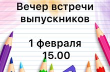 Дорогие выпускники! Уважаемые учителя! Вечер встречи состоится 1 февраля 2020 года в 15.00 в актовом зале. Приходите, мы ждем с нетерпением!