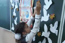 2 сентября в 3В классе (классный руководитель Миннуллина Л.З.) был проведён «Урок мира». Учащиеся вспомнили о понятиях "мир" и "война". Поговорили, почему и сегодня слышны выстрелы в разных уголках планеты и как изменить мир к лучшему. Вырезали голубей и написали свои пожелания мира и добра.