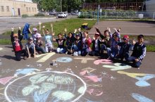 Состоялось конкурс рисунков на асфальте. Дети придумали названия своим отрядам и девиз. Нарисовали эмблему отряда. Ребята нарисовали мир таким, каким они его видят. Были подведены итоги конкурса. Услышали теплые слова от жителей микрорайона.
