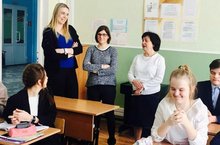 Студентки из Франции посетили урок родного языка в 1а классе. Учащиеся изучали тему "Кышкы уеннар - Зимние игры". Учитель Эльмира Зуфаровна преподнесла материал в игровой форме, применяя на уроке коммуникативные и здоровьесберегающие технологии.