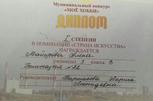 Поздравляем Майорову Алену, ученицу 3 в класса, с победой в муниципальном конкурсе портфолио "Мое хобби" среди учащихся 1-7 классов в номинации "Страна искусства" (рук. Бармакова Лариса Леонидовна). Молодцы! Так держать!