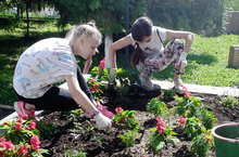 Ребята трудового лагеря продолжают трудиться во благо родной гимназии. Убирают двор, рыхлят цветочные клумбы, готовят кабинеты к новому учебному году.