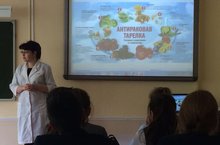 Перед учащимися 8Б класса выступила специалист Центра здоровья для детей при государственном автономном учреждении здравоохранения «Детская городская больница с перинатальным центром» Валеева Г.Ф. Она рассказала, что для профилактики онкологических и других заболеваний существуют определенные универсальные рекомендации. Эти меры входят в понятие здорового образа жизни: питание и физическая нагрузка, сон, регулярное медицинское обследование. Результаты исследований показывают, что у людей, выбравших здоровый образ жизни, снижен риск развития некоторых видов рака.