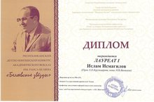 17 мая в. г. Набережные Челны состоялся гала – концерт Республиканского детско-юношеского конкурса академического вокала им. Раиса Беляева «Беляевские звезды» под руководством профессора, заведующей кафедрой вокального искусства Казанской Государственной консерватории им. Н.Жиганова З.Д.Сунгатуллиной. Наш гимназист Исмагилов Ислам (8А) стал Лауреатом I степени. Поздравляем с победой и желаем дальнейших успехов!