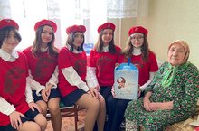 В преддверии этого большого праздника учащиеся 7б класса (руководитель Мухлисуллина Гульчачак Насимовна) доставили труженику тыла Сахаповой Рашиде Рауфовне поздравительные слова и праздничный гостинец от Президента Республики Татарстан Рустама Нургалиевича Минниханова.