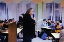девятиклассники выступили перед одноклассниками с докладом. -