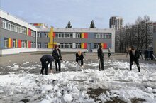 Сегодня ребята вышли на уборку территории от снега. Мероприятие прошло в рамках экологического двухмесячника #ЭКОВЕСНА.