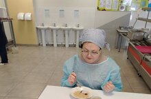 Родитель посмотрела, как осуществляется накрытие столов, оценила внешний вид горячих блюд, попробовала творожную запеканку с повидлом, чай и зелёное яблоко, отметила, что приготовленный обед вкусный, полезный. Также проведен осмотр отходов пищевой продукции.