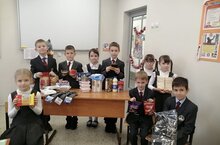 Ученики 1-го класса также приняли участие в сборе гуманитарной помощи для участников СВО.