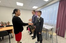 Встреча проходила в актовом зале. Родителей встречали директор Ляхова Г.А., заместитель директора по учебной работе Амирханова Н.В., заместитель директора по воспитательной работе Малова О.Н., учитель начальных классов Исакова С.С.