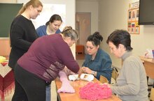 Мастер-класс увлёк не только мам, но и девочек-старшеклассниц. Все участники успешно справились с вязанием шарфа, который остался им в подарок. Спасибо большое Ирине Михайловне. Было очень интересно. -