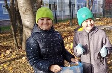 Учащиеся 3б класса активно трудятся на территории гимназии. Они с энтузиазмом убирают листья