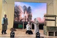Театральләштерелгән тамашада рольләрне Татарстан Республикасының Атказанган мәдәният хезмәткәрләре Марат Баязитов белән Зөлфирә Баязитова, Фарил Дульмиев, күпсанлы Халыкара конкурслар лауреаты Ленар Хамматов һәм үзешчән артистлар - Айназ Газизов, Илназ Сибгатуллин, Нурия Халикова, Хәнифә Халикова башкарды. Артистларның чыгышы тамашачыларның дәвамлы алкышларына лаек булды. -
