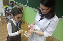 В 1Б классе сегодня состоялся очень интересный и познавательный классный час. Специальным гостем стала врач-стоматолог, которая рассказала и показала ребятам как правильно соблюдать гигиену полости рта, к чему может привести несоблюдение элементарных правил.