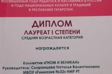 26 марта учащиеся театральных коллективов нашей гимназии были приглашены на муниципальный театральный фестиваль «Театр без границ», посвященный Году педагога и наставника в России и Году национальных культур и традиций в Республике Татарстан. Торжественная церемония награждение прошла в «Театре юного зрителя» г. Нижнекамска. Поздравляем победителей фестиваля – коллектив гимназии №32 «Гном и Великан» (рук. Сызранцева Н.В.)! Поздравляем участников фестиваля: коллектив 2а класса (рук. Грачева Г.Т.), коллектив 2в класса (рук. Карпова Н.Н.), коллектив 2д класса (рук. Анисочкина Е.Ю.), коллектив 3д класса (рук. Сытытова А.А.). Молодцы!