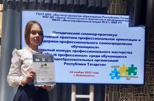 24 ноября 2022 г. в Нижнекамске прошел ежегодный открытый конкурс профессионального мастерства "Юный профессионал". Ученица 7Г класса Салахутдинова Данэля, воспитанница учителя технологии Гараниной Елены Олеговны, заняла 1 место в номинации для учащихся 7-х классов "Юный портной". Поздравляем Данэлю и Елену Олеговну и желаем дальнейших творческих успехов!