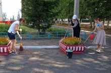 Приближается новый учебный год и гимназия должна встретить своих учеников чистой и красивой. Старшеклассники оказали помощь в уборке территории: осуществили уборку в зимнем саду и актовом зале, протерли пыль с растений и подоконников.