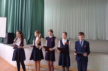 О тех, кто уже не придет никогда, — помните!Славной Победе советского народа в Великой Отечественной Войне посвятили свои литературно-музыкальные композиции ученики 4а (учитель Клещевникова И.М.), 4д (учитель Киляшова С.Г.) и 4е (учитель Пасерб А.Н.) классов. Торжественные мероприятия для учащихся начальной и старшей школы начали с исполнения гимна Российской Федерации.
