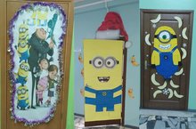 Миньоны, а точнее милые коротышки, герои любимого многими мультфильма, буквально заполонили гимназию. Их можно увидеть на каждом этаже, практически с самого порога любого кабинета. А все потому, что тема Новогоднего оформления в этом году - "С Миньонами в Новый год".