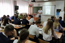В рамках месячника «Экстремизму – нет!» сегодня в нашей гимназии прошла лекция для учащихся 9б класса на тему «Ответственность за пропаганду насилия». Сафиуллин Фархад Шафигуллович, начальник отдела по связям с общественными формированиями и национальным вопросам Исполнительного комитета Нижнекамского муниципального района РТ подробно рассказал ребятам о запрещенных течениях «АУЕ» и «Колумбайн» и ответственности за правонарушения и преступления.