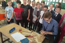 В рамках предметной недели эстетических дисциплин учитель технологии Борисов Сергей Иванович и его воспитанники провели мастер-классы для учащихся гимназии. Ученик 8а класса Ханов Арсен продемонстрировал мастер-класс по изготовлению из фанеры подставки под кухонные ножи, а Котов Стас из 6б класса научил делать самолет из пенопласта.