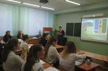В рамках месячника гражданско - патриотического воспитания Валиева Д.Т., библиотекарь гимназии провела с учащимися 7а класса урок мужества "Мир памяти", посвященный 115-летию Аркадия Гайдара.