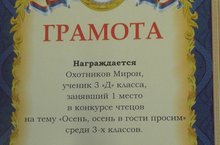 1 место - Охотников Мирон (3 д), Фатхутдинова Ильвина (3е);