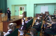 Перед первоклассниками выступил инспектор пропаганды ГИБДД Валиев Р.И.