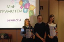Мы-грамотеи! - интеллектуальная викторина по орфографии, в которой команды учащихся в игровой форме соревновались в знании русского языка. Члены жюри- призеры муниципального этапа всероссийской олипиады школьников по русскому языку, ученицы 10 А класса Галимова Диляра и Бочкарева Екатерина.