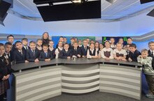 *побывали в телевизионной студии, узнали как работают корреспонденты;