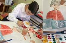Активисты гимназии 32 рисуют стенгазеты ко Дню пожилого человека. Этими стенгазетами ребята украсят подъезды жителей микрорайона. -