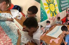 В школьном лагере «Мультландия» прошёл творческий мастер-класс по изготовлению плакатов ко Дню России. В процессе работы дети познакомились с приёмами работы в технике объемной аппликации, отработали навыки работы с клеем путём наложения деталей, ознакомились с элементом Российской символики - Российским флагом, символами России, узнали много интересного о празднике, отвечали на вопросы в викторине «Знай свое Отечество».